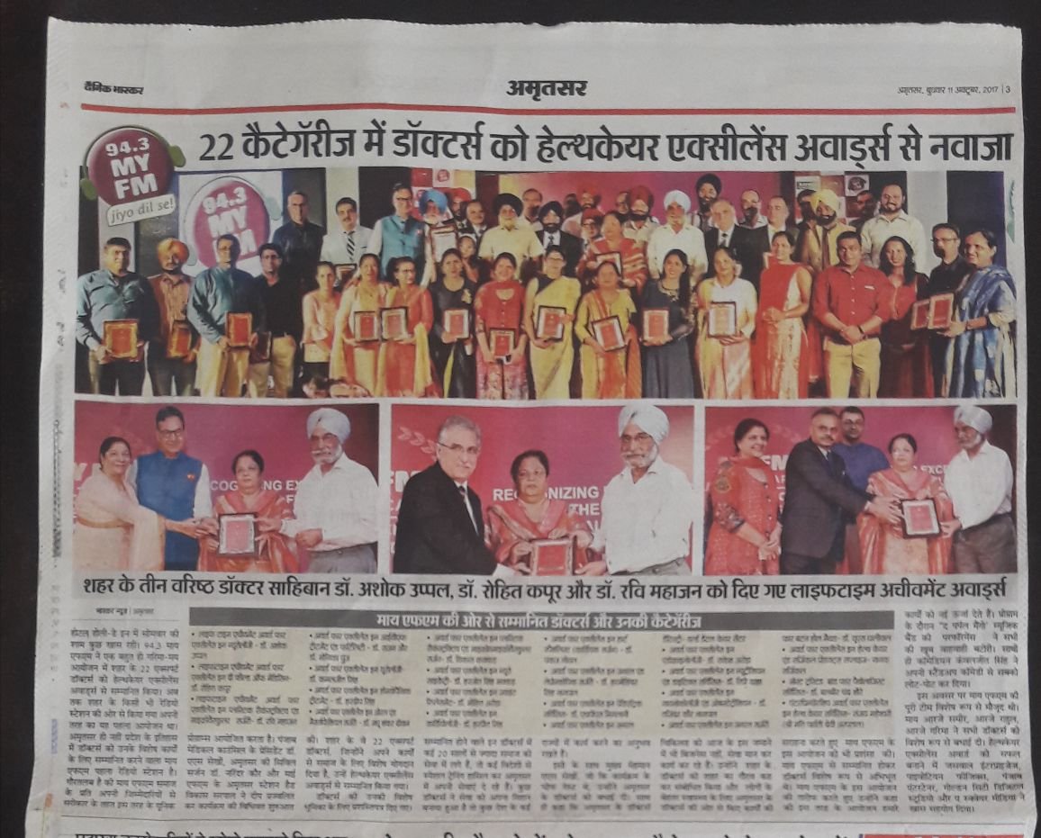 - Dr. Mohit Arora award (Best orthopedic surgeon Amritsar)